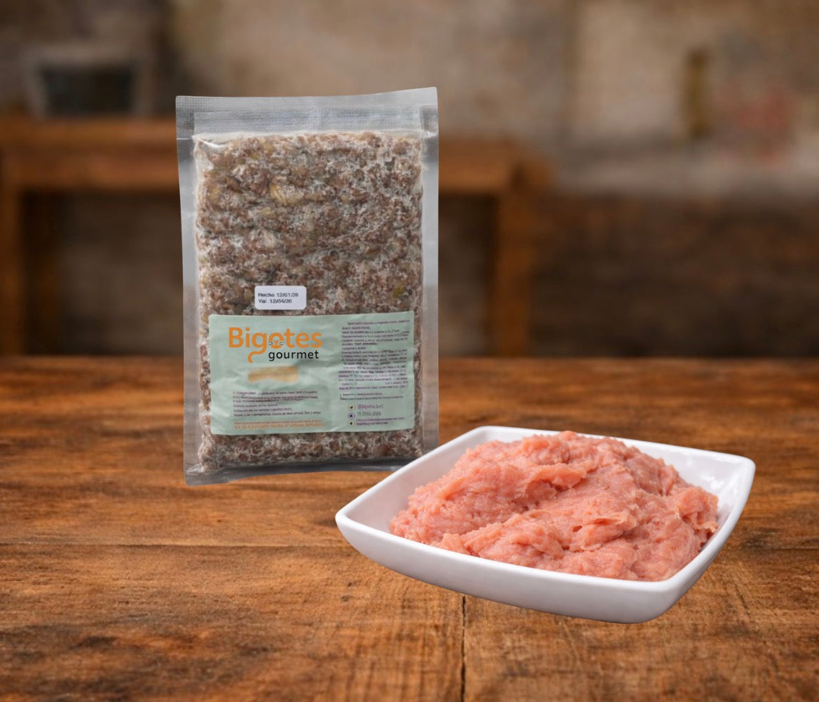 10-15% huesos carnosos (alas, costilla, cuello y/o patas de pollo)